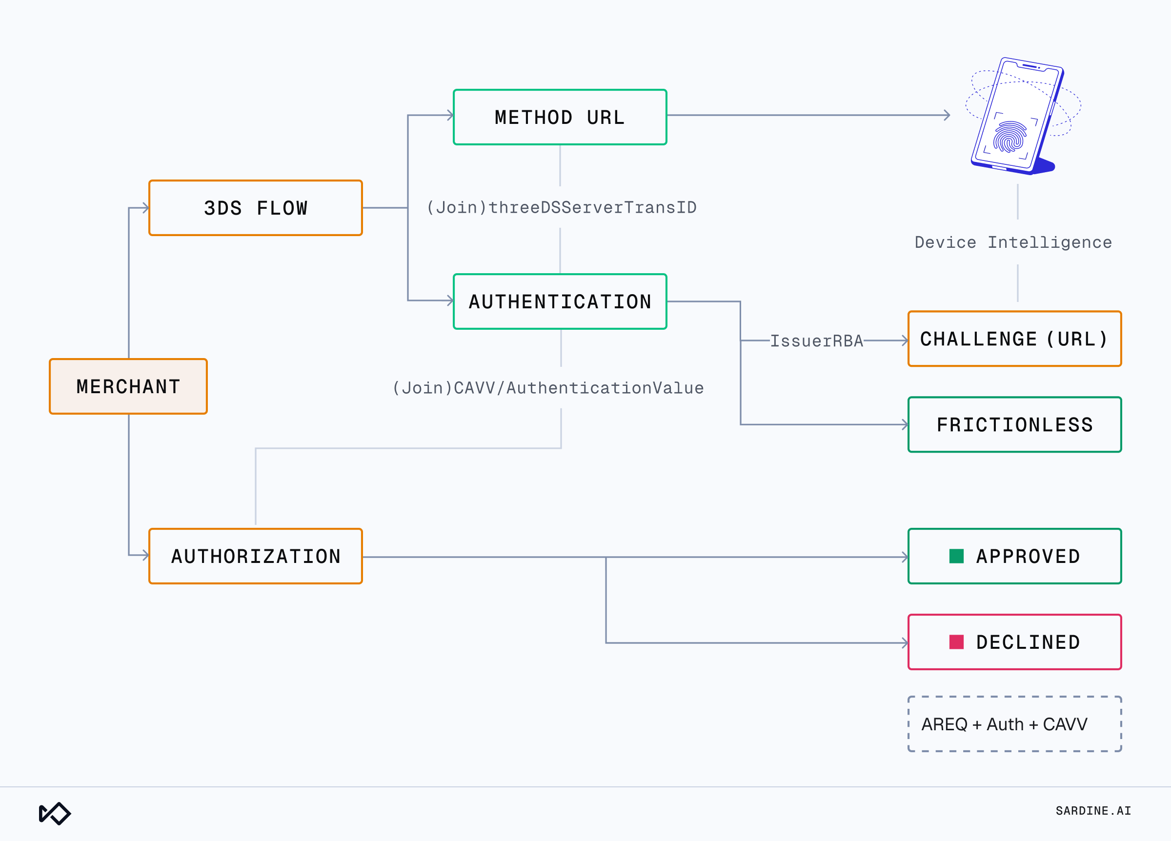Ensure your ACS and payment stack are using 3DS2 with Method URL device intelligence. Work with fraud prevention partners like Sardine to fine-tune authentication and risk assessment.