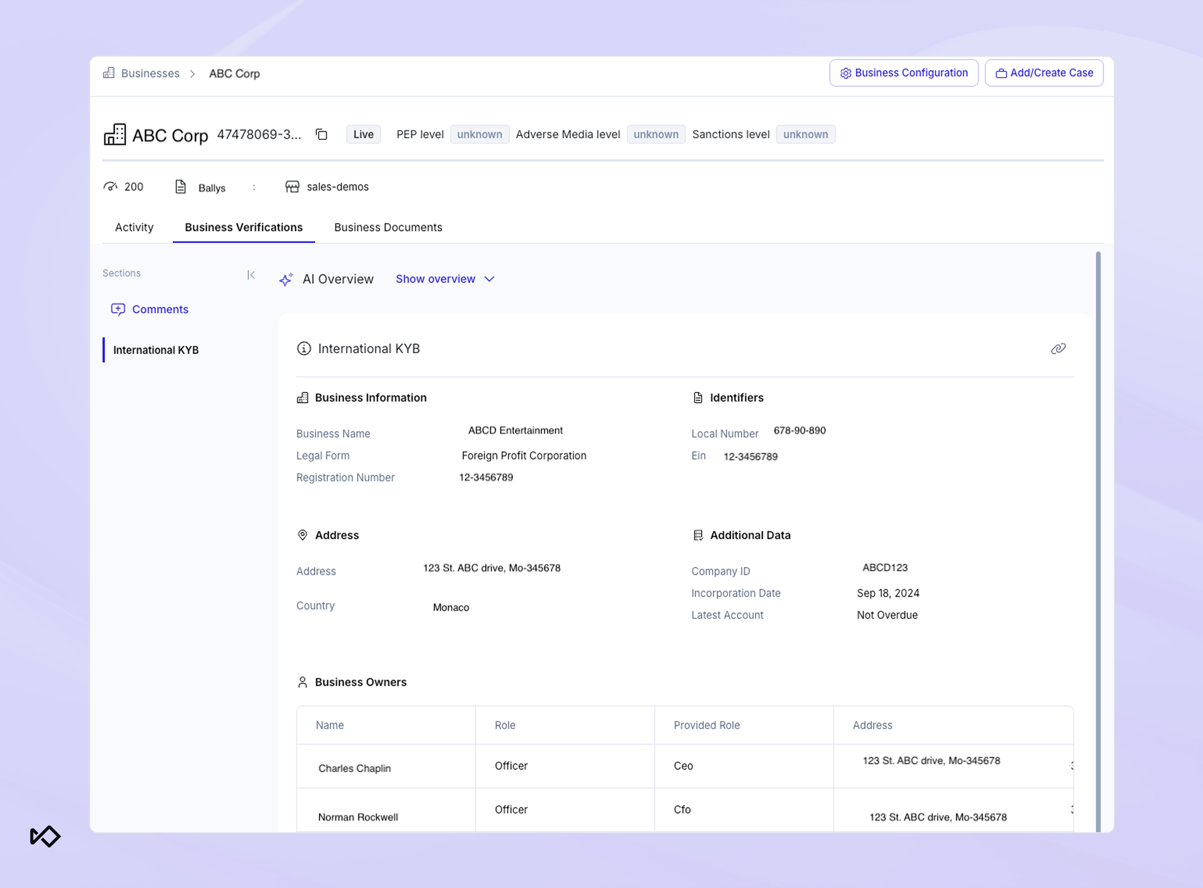 International business verification (KYB)