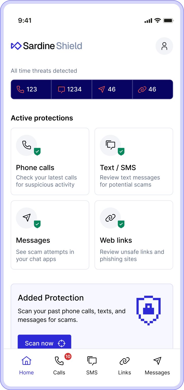 • Traditional fraud tools kick in after the damage is done. Sardine Shield acts earlier, detecting scams right as they hit your phone, before you ever click, reply, or send money.